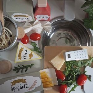 1 κατσαρόλα για να μαγειρέψετε τα ζυμαρικά, 1 κουτάλι σπαγγέτι, 1 πακέτο μακαρόνια, 1 πακέτο ζυμαρικά φιογκάκια farfalle, 1 τρίφτη, 1 κομμάτι τυρί παρμεζάνα, 3 μανιτάρια