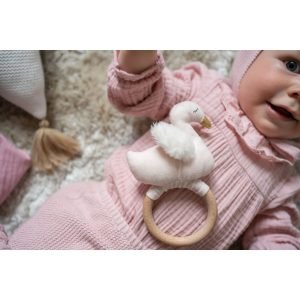 Ο ξύλινος δακτύλιος είναι ιδανικός γιατί μπορούν εύκολα να τον κρατήσουν τα μικρά χεράκια και ο ήπιος ήχος κουδουνίστρας διεγείρει τις αισθήσεις των μωρών.