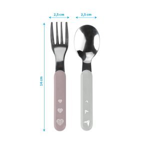 Σετ με πιρουνι και κουταλάκι από ανοξείδωτο ατσάλι και σε ιδανικό μέγεθος για να μπορεί η αμμά να ταίσει το παιδί της!