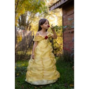 Τραβήξτε όλα τα βλέμματα πάνω σας στο πάρτυ με αυτό το φόρεμα, εμπνευσμένο από την Πεντάμορφη του παραμυθιού, της εταιρείας Great Pretenders. Φτιαγμένο με υφάσματα, τελειώματα και πινελιές υψηλής ποιότητας, αυτό το φόρεμα διαθέτει εξαιρετικές λεπτομέρειες, όμορφα σχέδια και στρώματα από πλούσια υφάσματα. Μόνο κορυφαίας ποιότητας σατέν και οργάντζα χρησιμοποιήθηκαν για την παραγωγή αυτού του αριστουργήματος. Προτεινόμενη ηλικία: 6-8 ετών Μεγεθολόγιο: Ύψος:116-128 εκ. Μέση:58-59 εκ. Γοφοί:68-70 εκ.