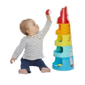 Είναι πολυλειτουργικό και μπορείς με τα 5 χρωματιστά κομμάτια να τα στοιβάξεις, να φτιάξεις παζλ και να παίξεις παχνίδια με μπάλες.