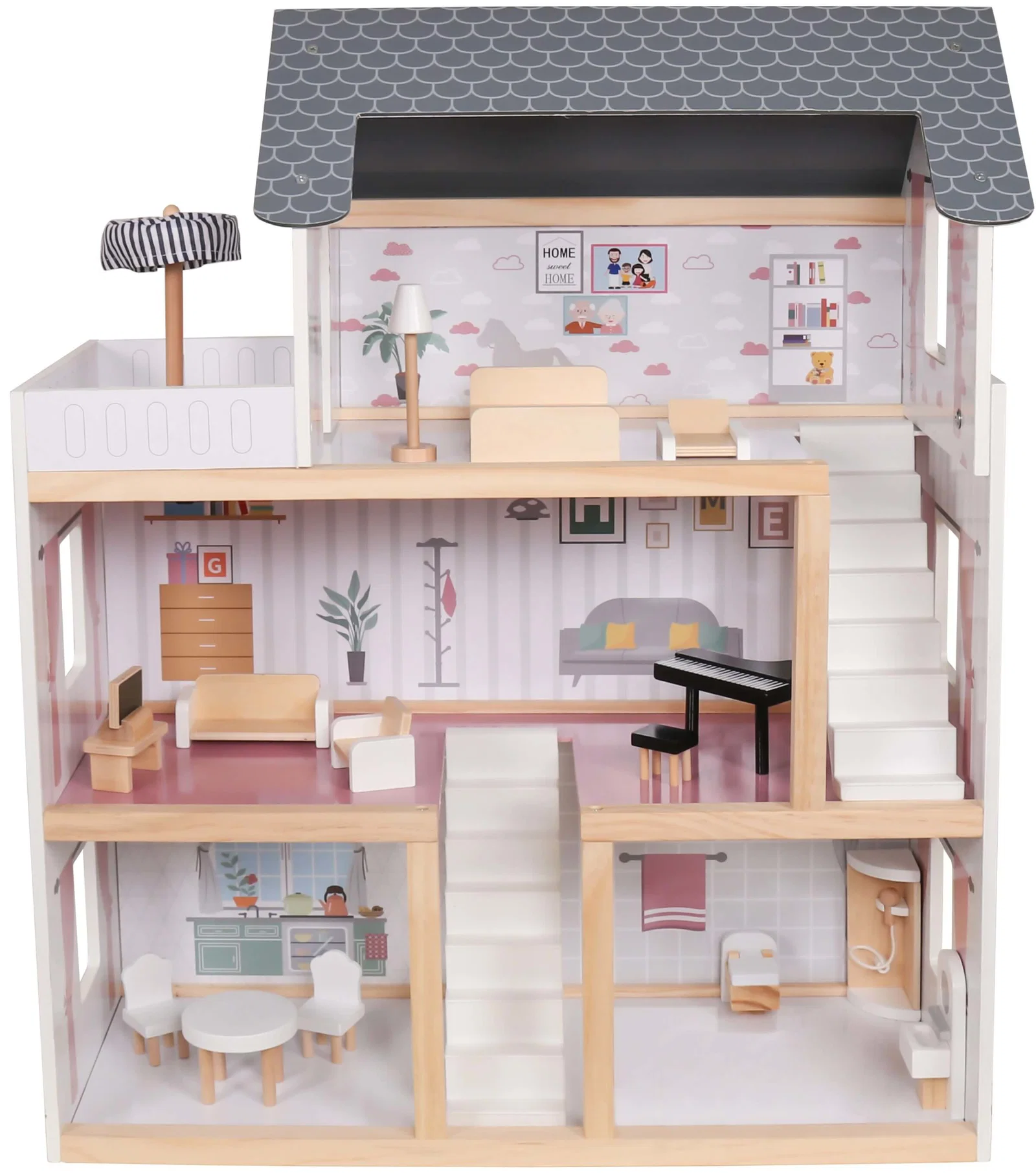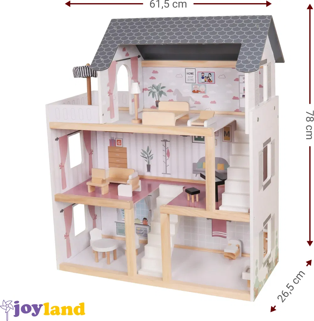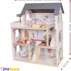 Το κουκλόσπιτο Joyland Bright θα βοηθήσει τα παιδιά σας να γνωρίσουν τον κόσμο της δημιουργικής απασχόλησης, χαρίζοντας τους αμέτρητες ώρες παιχνιδιού. Χωρίζεται σε 3 ορόφους που επικοινωνούν με σκάλες, και διαθέτει όλα τα απαραίτητα έπιπλα και αξεσουάρ για την τραπεζαρία, το σαλόνι, το μπάνιο, το υπνοδωμάτιο και το μπαλκόνι. Οι φωτεινές του αποχρώσεις το καθιστούν ιδανική επιλογή για κάθε γούστο.