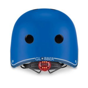 Globber Helmet Primo Lights – Navy Blue (505-100): XS/S (48-53cm).Κράνος προστασίας με αναλάμπον LED ασφαλείας. Ρυθμίστε εύκολα την εφαρμογή από το κουμπί δακτυλίου. Κέλυφος με ανθεκτική δομή EPS. Μαξιλαράκια αφρού 7mm για μέγιστη άνεση και ασφάλεια.