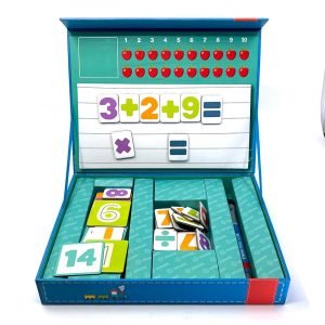 Μαγνητικό Σετ με αριθμούς και πράξεις από την ελληνική εταιρία Svoora. – Τα παιδιά, με τις μαγνητικές κάρτες ψηφίων και πράξεων, αποκτούν την πρώτη επαφή τους με τους αριθμούς και τα σύμβολα, μαθαίνοντας τις βασικές αριθμητικές πράξεις πρόσθεσης και αφαίρεσης! – Η ταύτιση της εικόνας με τον αριθμό ενισχύει την κατανόηση των εννοιών και την αναγνώριση του πλήθους που το κάθε νούμερο αντιπροσωπεύει. – Ο πίνακας περιέχει γραμμές που καθοδηγούν το παιδί στη σωστή γραφή των αριθμών και των πράξεων, πάνω σε αυτές. – Ο πιο δημιουργικός τρόπος για την εξάσκηση της παρατηρητικότητας και το συντονισμό χεριού-ματιού. Η ιδιαίτερη συσκευασία περιλαμβάνει 90 μαγνητικές κάρτες διπλής όψης με υψηλή ανθεκτικότητα εκ των οποίων: 10 για την εκμάθηση γραφής των ψηφίων 0-9, 20 με εικόνες και τους αριθμούς 1-20, 40 με ψηφία και μαθηματικά σύμβολα, 10 με πράξεις πρόσθεσης και 10 με πράξεις αφαίρεσης. Επίσης, περιλαμβάνεται και ένας μαρκαδόρος «γράψε – σβήσε» με σφουγγάρι. Κατάλληλο άνω των 4 ετών.
