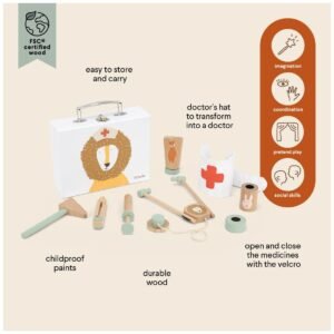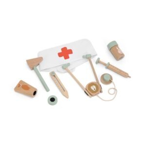 Αισθάνεται κανείς άρρωστος; Με αυτό το διασκεδαστικό σετ αξεσουάρ γιατρού, τα παιδιά θα απολαμβάνουν να παίζουν γιατρό με τις κούκλες, τα βελούδινα ζώα και τους φίλους τους. Οι μικροί ασθενείς θα αισθάνονται καλύτερα σε ελάχιστο χρόνο όταν χρησιμοποιούν αυτό το κιτ γιατρού με πολλά αξεσουάρ. Το παιχνίδι αυτό βοηθά τα παιδιά να εξοικειωθούν περισσότερο με το επάγγελμα του γιατρού, κάνοντας μια μελλοντική επίσκεψη σε αυτόν πιο ευχάριστη.