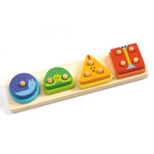 Ξύλινο παζλ από την εταιρεία Djeco με πρωτότυπο σχεδιασμό, που θα ενθουσιάσει τους μικρούς μας φίλους και θα τους βοηθήσει στην εκμάθηση των βασικών σχημάτων. Δημιουργήστε χρωματιστά ζωάκια, ενώ παράλληλα εξασκείτε τη λεπτή κινητικότητα και το συντονισμό χεριού-ματιού. Κατάλληλο για παιδιά ηλικίας από 1,5 έως 3 ετών.