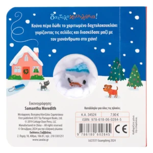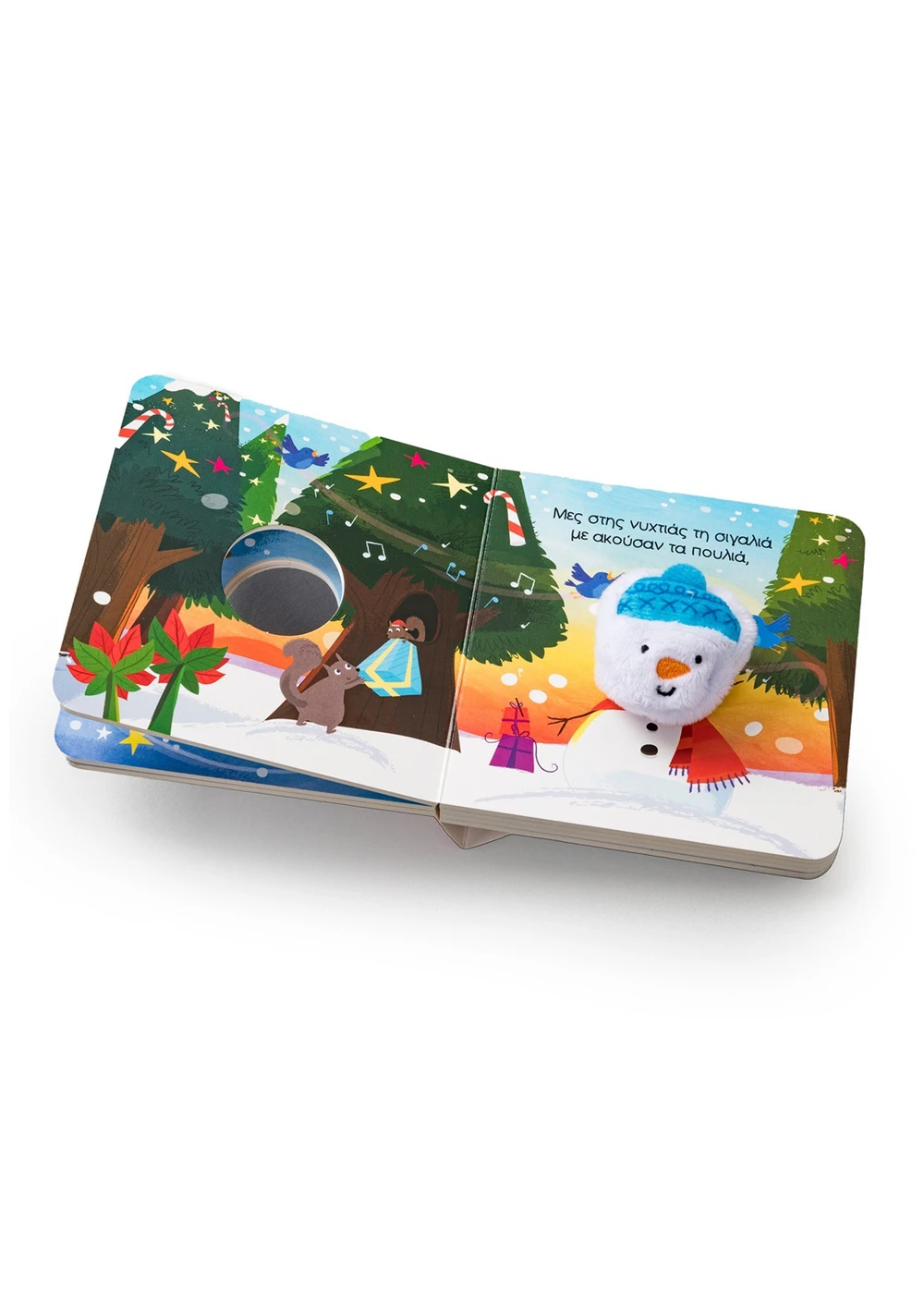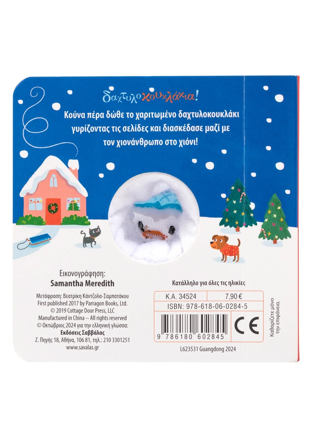 Κούνα πέρα δώθε το χαριτωμένο δαχτυλοκουκλάκι γυρίζοντας τις σελίδες και διασκέδασε μαζί με τον χιονάνθρωπο στο χιόνι!