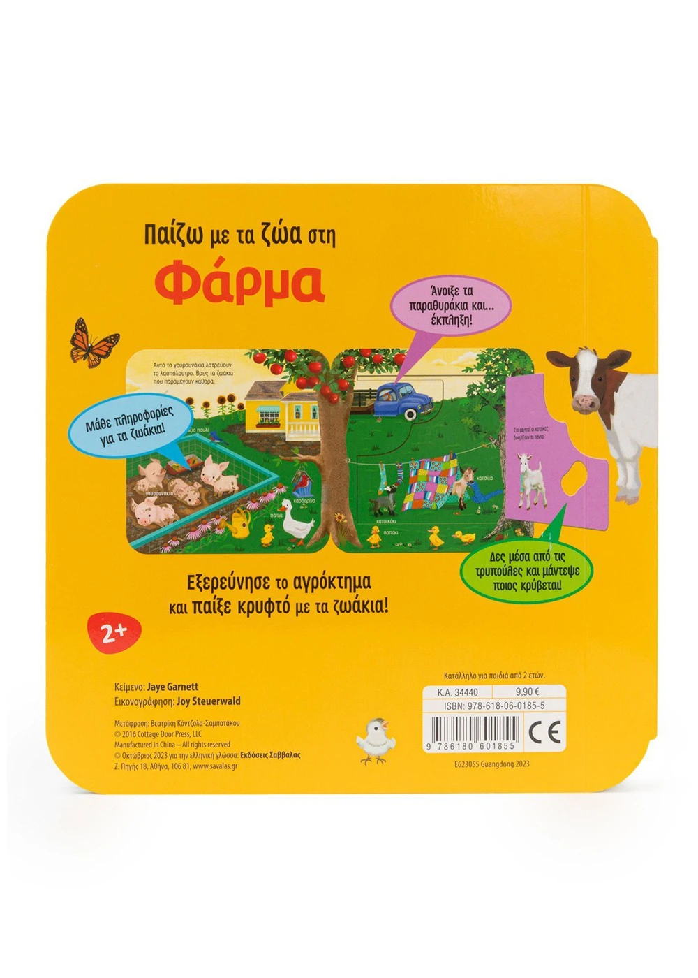 Εξερεύνησε το αγρόκτημα και παίξε κρυφτό με τα ζωάκια! Μάθε πληροφορίες για τα ζωάκια. Άνοιξε τα παραθυράκια και δες τις εκπλήξεις που κρύβουν! Δες μέσα από τις τρυπούλες και μάντεψε ποιος κρύβεται.