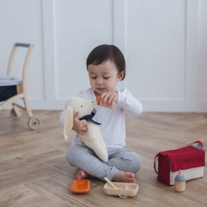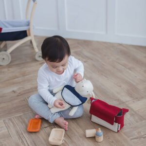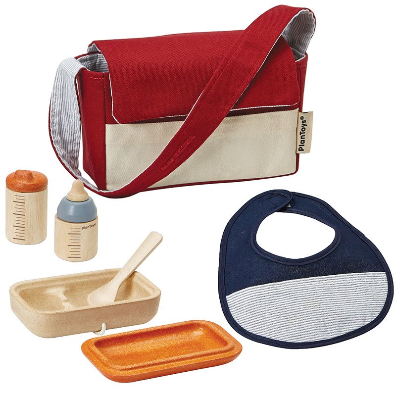 Ώρα να ταΐσουμε το μωρό! Αυτό το σετ περιλαμβάνει 1 τσάντα, η οποία μπορεί να κρεμαστεί στο καροτσάκι, 1 δοχείο φαγητού, 1 κουταλάκι, 1 σαλιάρα, 1 μπουκάλι για νερό και 1 μπιμπερό. Αυτό το παιχνίδι ρόλων ενθαρρύνει τα παιδιά να αναπτύξουν την αίσθηση της αγάπης και της φροντίδας.