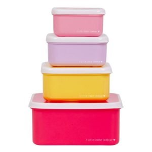 Το σετ περιλαμβάνει 4 διαφορετικά μεγέθη δοχείων και είναι τέλειο για το σχολείο ή την βόλτα σας.