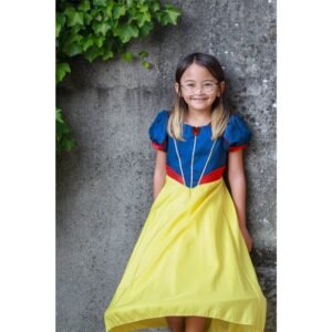 Ένα ταξίδι στον παραμυθένιο κόσμο της Χιονάτης και των επτά νάνων, με το υπέροχο αυτό φόρεμα από την σειρά Deluxe της εταιρείας Great Pretenders απο σατέν ύφασμα και οργάντζα. Παιχνιδι και χορος για τα αποκριατικα παρτυ και οχι μονο. Προτεινόμενη ηλικία: 2-4 ετών Μεγεθολόγιο: Ύψος:92-104 εκ. Μέση:54-55 εκ. Γοφοί:60-62 εκ.