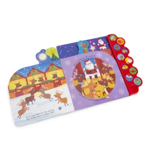 Τρίγωνα, κάλαντα!… Τα Χριστούγεννα έφτασαν. Όλα είναι γιορτινά! Ο Αϊ-Βασίλης ξεκίνησε με το έλκηθρό του, να μοιράσει δώρα σε όλα τα παιδιά! Πάρε μέρος στη γιορτή και με τους 10 μαγικούς ήχους του βιβλίου ζωντάνεψε την εορταστική αυτή περίοδο!