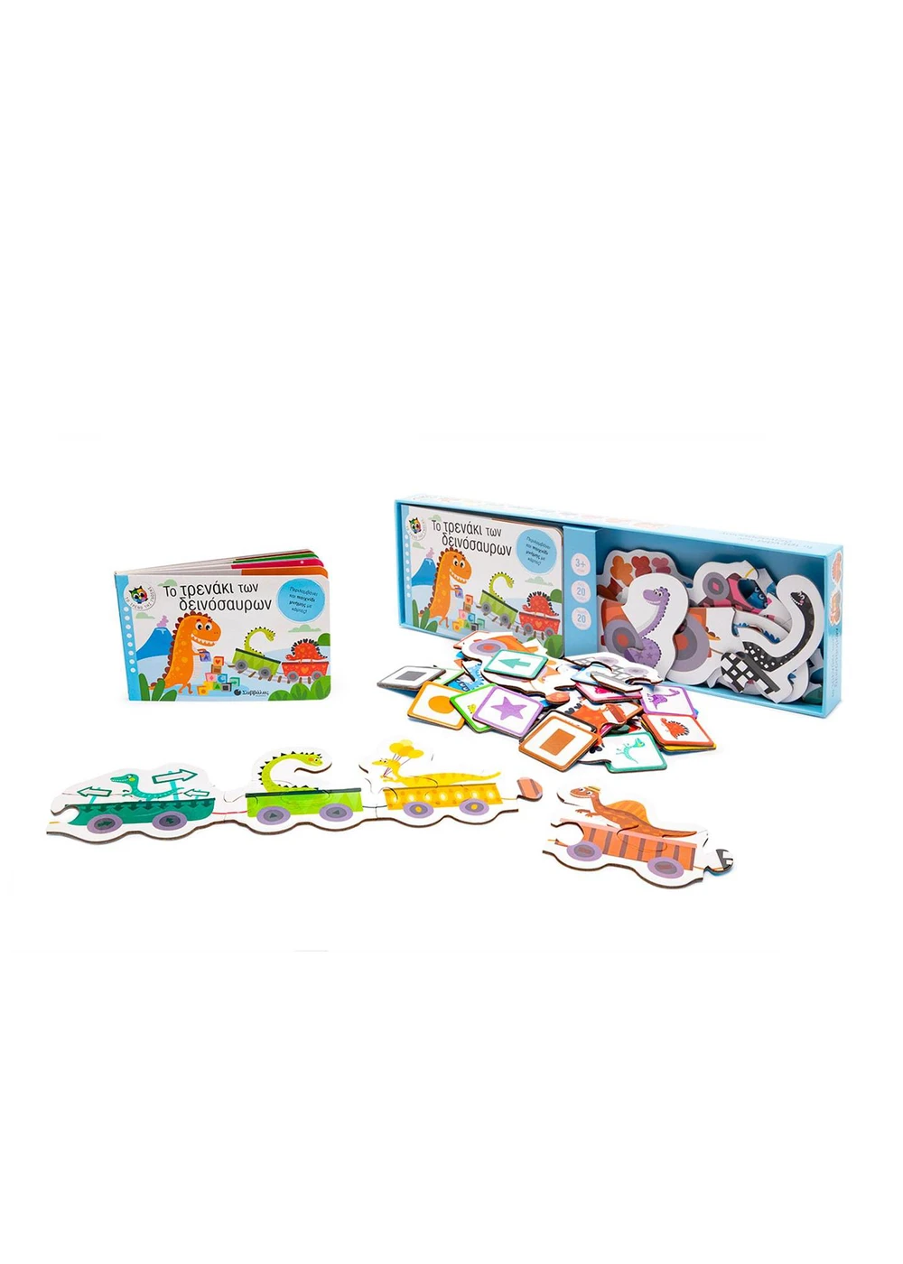 Το «Τρενάκι της δεινόσαυρων» βοηθά τα παιδιά να αναπτύξουν την ικανότητα να αναγνωρίζουν τα χρώματα και τα σχήματα. Η ικανότητα αυτή συμβάλλει στην καλλιτεχνική τους ανάπτυξη αλλά και στην καθημερινή τους επικοινωνία, όταν ταξινομούν ή ταυτοποιούν διάφορα πράγματα. Το σχήμα και το χρώμα σε κάθε σελίδα του βιβλίου αντικατοπτρίζεται στην εικονογράφηση. Το παζλ εξασκεί τη τις κινητικές δεξιότητες του παιδιού και το μαθαίνει να αναγνωρίζει τα χρώματα και τα σχήματα. Το παιχνίδι με κάρτες βοηθά το παιδί να εξασκήσει τη μνήμη και την παρατηρητικότητά του.