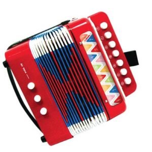 Για την πρώτη επαφή των παιδιών με τη μουσική και τις νότες ένα υπέροχο ακορντεόν σε κόκκινες και μπλε αποχρώσεις. Διαθέτει 7 πλήκτρα και είναι ιδανικό για τις πρώτες μελωδίες των μικρών μας μουσικών. Κατάλληλο από 5 έως 12 ετών.