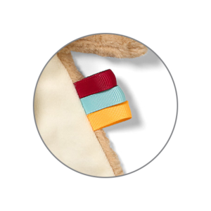Διαθέτει θήκη για πιπίλα για να αποκοιμιέται όχι μόνο από την ίδια αλλά και από τη μοναδική αίσθηση που θα αισθάνεται από το λούτρινο χαϊδεύοντάς το. Οι πολύχρωμες ετικέτες στο πλαϊνό μερός, θα ενισχύσουν τη λαβή και την λεπτή κινητικότητα.