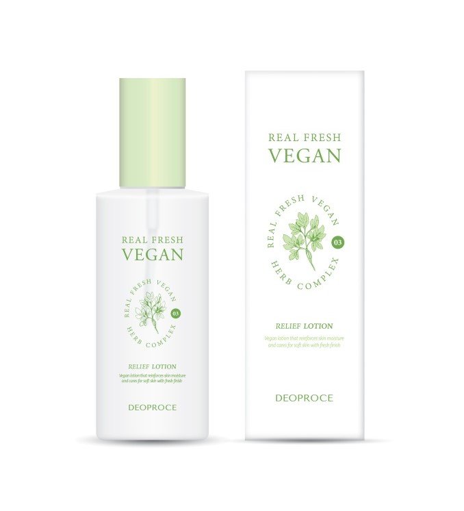 - Η Deoproce Real Fresh Vegan Relief Lotion έχει ελαφριά υφή και δεν αφήνει λιπαρότητα.