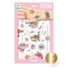 Τα τατουάζ της εταιρείας Djeco θα ενθουσιάσουν τους μικρούς μας φίλους! Είναι δερματολογικά ελεγμένα και η εφαρμογή τους είναι πολύ εύκολη, απλά πιέζετε το σχέδιο της επιλογής σας στο δέρμα χρησιμοποιώντας νερό. Κατάλληλο για ηλικίες από 3 ετών και άνω. Περιέχονται δύο κάρτες με διαφορετικά σχέδια στην κάθε μία. Διαστάσεις 21×14 εκ.