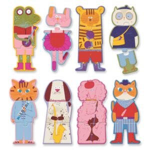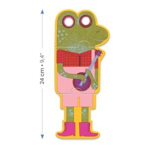 Ένα τριπλό παζλ ανακάλυψης με θέμα τα ζώα από την εταιρεία Djeco. Μέσα από την ενασχόληση μαζί του, το παιδί ανακαλύπτει και συνθέτει τις σιλουέτες των ζώων, αλλά με έναν πρωτότυπο τρόπο – κάθετα! Τα ειδικά σχεδιασμένα κομμάτια του είναι εύκολα στο πιάσιμο, βοηθώντας στην ανάπτυξη της λεπτής κινητικότητας και της παρατηρητικότητας. Προσοχή! Μόνο τα σωστά κομμάτια μπορούν να ταιριάξουν μεταξύ τους. Τα αστεία ζωάκια-μουσικοί δίνουν μια παιχνιδιάρικη νότα, ενώ η πολύχρωμη και πρακτική συσκευασία με χερούλι καθιστά το παζλ ιδανικό για εύκολη μεταφορά και αποθήκευση. Η συσκευασία περιλαμβάνει 8 κάθετα παζλ, 3 κομματιών το καθένα. Κατάλληλο για ηλικίες από 3 ετών.
