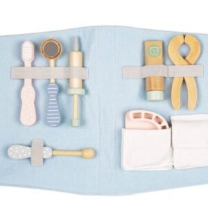 - Ουδέτερα χρώματα – χάρη στο συνδυασμό φυσικού ξύλου και ουδέτερων χρωμάτων, το σετ Dentist είναι ένα όμορφο δώρο τόσο για κορίτσια όσο και για αγόρια.