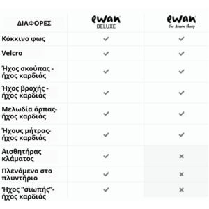 – Το κόκκινο φως και οι ήχοι διαθέτουν χρονοδιακόπτη 20 λεπτών με αυτόματη απενεργοποίηση και έλεγχο έντασης.