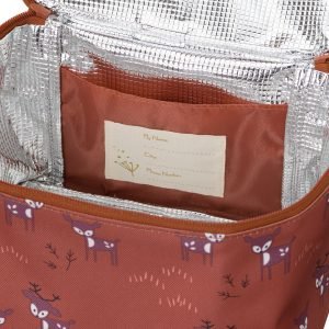 Διαθέτει μεγάλο χώρο ώστε να χωρέσετε γενναιόδωρα γεύματα και ροφήματα μέσα σε αυτό, μια τσεπούλα για τα μαχαιροπίρουνά σας και ένα ταμπελάκι για να γράψετε το όνομα του παιδιού για να μπορέσει να ξαναβρεί τον …κηδεμόνα του σε περίπτωση απώλειας.