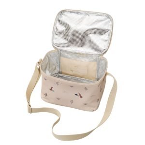 Διαθέτει μεγάλο χώρο ώστε να χωρέσετε γενναιόδωρα γεύματα και ροφήματα μέσα σε αυτό, μια τσεπούλα για τα μαχαιροπίρουνά σας και ένα ταμπελάκι για να γράψετε το όνομα του παιδιού για να μπορέσει να ξαναβρεί τον …κηδεμόνα του σε περίπτωση απώλειας.