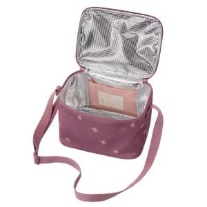 Διαθέτει μεγάλο χώρο ώστε να χωρέσετε γενναιόδωρα γεύματα και ροφήματα μέσα σε αυτό, μια τσεπούλα για τα μαχαιροπίρουνά σας και ένα ταμπελάκι για να γράψετε το όνομα του παιδιού για να μπορέσει να ξαναβρεί τον …κηδεμόνα του σε περίπτωση απώλειας.