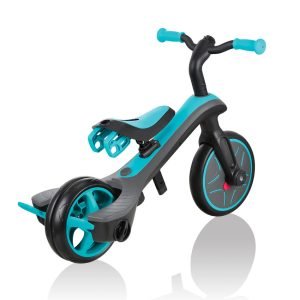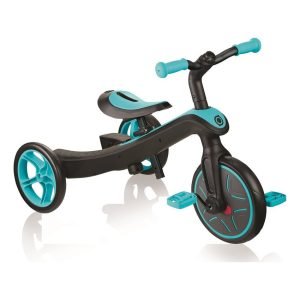 Globber Τρίκυκλο Trike Explorer 4in1-Teal (632-105).Τι προσφέρει το EXPLORER TRIKE σε σχέση με ένα απλό τρίκυκλο; Πρόκειται για ένα τρίκυκλο και ποδήλατο ισορροπίας (όλα σε ένα) που αλλάζει χρήση χωρίς εργαλεία και βίδες! Χρησιμοποιώντας τον πατενταρισμένο μηχανισμό αλλαγής χρήσης χωρίς εργαλεία και εύκολης αποθήκευσης οι γονείς μπορούν να αλλάζουν χρήση, καθώς τα παιδιά μεγαλώνουν με τον πιο εύκολο και πρακτικό τρόπο.Έχουν 2 πίσω φρένα για ασφαλή ακινησία του τρίκυκλου καθώς και υποπόδιο ώστε τα παιδιά να μπορούν να ξεκουράσουν με ασφάλεια τα πόδια τους, ενώ το προϊόν βρίσκεται σε κίνηση.Περιλαμβάνει την ζώνη 5 σημείων και τη μπάρα ασφαλείας, για επιπρόσθετη ασφάλεια του μικρού παιδιού.