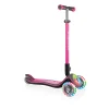 Globber Scooter Elite Deluxe-Navy Blue (444-400).Μοναδικό πτυσσόμενο scooter,με απλή διαδικασία αναδίπλωσης.Με κουμπί κλειδώματος στο μπροστινό μέρος (ασφαλές και απλό στο χειρισμό),για να κλειδώνει το τιμόνι και να κινείται μόνο ευθεία,ώστε να γίνεται πιο εύκολα η εκμάθηση της ισσοροπίας.Ρυθμιζόμενο ύψος τιμονιού για να προσαρμόζεται όταν το παιδί μεγαλώνει.Με X-Cross σχεδιασμό, που ενισχύει την σταθερότητα στο οδόστρωμα και βελτιώνει την αλλαγή κατεύθυνσης που γίνεται καθώς στρίβει το τιμόνι.Χαμηλό deck για μεγαλύτερη σταθερότητα.Χειρολαβές κατασκευασμένες από ανθεκτικό υλικό, για μεγαλύτερη άνεση και μεγαλύτερη αντίσταση.Με απόλυτα ασφαλές φρένο.Με Φωτισμό LED στους τροχούς,που ανάβει κατά την οδήγηση.Μέγιστο βάρος αντοχής 50kg.