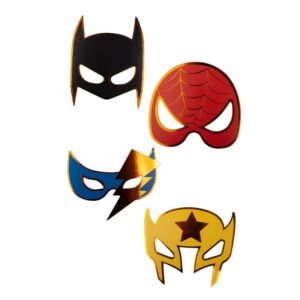Η συσκευασία περιλαμβάνει 8 μάσκες σε 4 διαφορετικά σχέδια, εμπνευσμένες από αγαπημένους ήρωες κόμικ και διακοσμημένες με μεταλλιζέ λεπτομέρειες