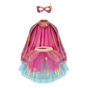Great Pretenders στολή ροζ-ιριδίζουσα με μάσκα “σούπερ ηρωίδα-ροκ σταρ” 3-6…