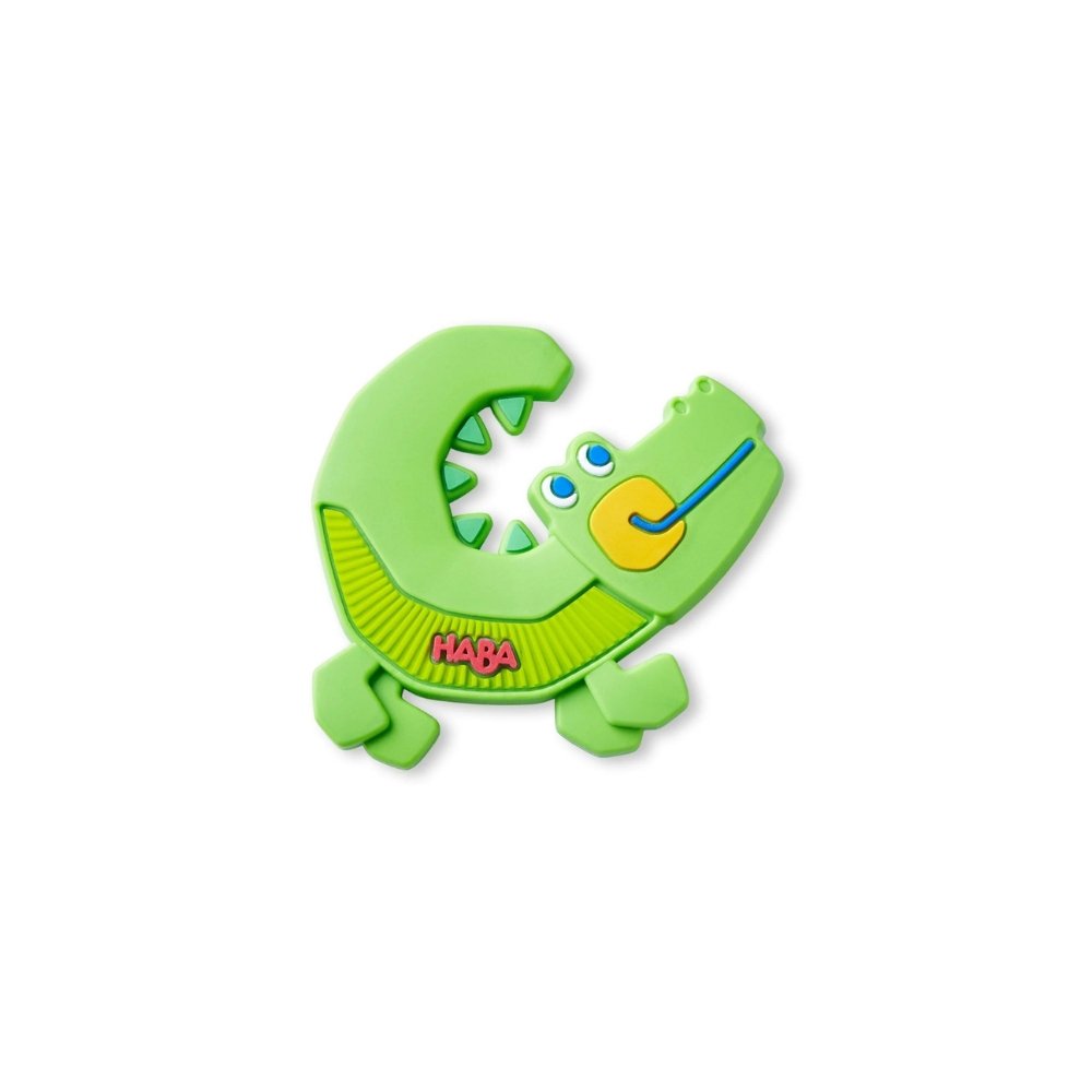 Στους πρώτους μήνες ζωής, τα μωρά εξερευνούν τον κόσμο με το στόμα τους – και το μασητικό κροκόδειλος της HABA είναι ιδανικά φτιαγμένο γι’ αυτή την περίοδο. Η ιδιαίτερη μορφή του με ανάγλυφες ραβδώσεις βοηθά στη χαλάρωση των μασητικών μυών και προσφέρει ανακούφιση κατά την οδοντοφυΐα. Ταυτόχρονα, η μοναδική του σχεδίαση ενθαρρύνει τη γλώσσα του μωρού να κινείται και να ανακαλύπτει διαφορετικές υφές, ενισχύοντας την αισθητηριακή αντίληψη. Απαλό, ελαφρύ και εύκολο στο πιάσιμο, αποτελεί μια ασφαλή και καθησυχαστική επιλογή για την περίοδο της οδοντοφυΐας – ένα μικρό βοήθημα που γίνεται καθημερινός σύντροφος.