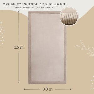 Χαλί υψηλής ποιότητας από την εταιρεία Hakuna Matte, κατάλληλο για να διακοσμήσει οποιοδήποτε εσωτερικό χώρο και φυσικά το παιδικό δωμάτιο. Αποτελείται από 3 στρώσεις: 1. Βελούδο για την πιο απαλή επαφή με το δέρμα 2. Υψηλής πυκνότητας αφρό μνήμης (memory foam): Για άνετο παιχνίδι και μπουσούλημα. 3. Αντιολισθητικό υπόστρωμα για προστασία από κραδασμούς κατά την πτώση. Το μέγεθος του (150x80x2.5εκ.) καθιστά το χαλί ιδανικό για προστασία από το κρύο πάτωμα, μπουσούλημα, παιχνίδι, ακόμα και γιόγκα ή γυμναστική στο σπίτι. Καθαρίζεται εύκολα με ηλεκτρική σκούπα ή πανί με νερό και σαπούνι, παρέχοντάς σας περισσότερο ποιοτικό χρόνο για να απολαύσετε τον χώρο σας και να παίξετε ανέμελα με τα παιδιά σας. Πλένεται στο χέρι στους 30°C. Ενδύκνειται για ενδοδαπέδια θέρμανση. Σημαντική διευκρίνηση: σε ξύλινο πάτωμα με ενδοδαπέδια θέρμανση συνίσταται κάθε 2-3 εβδομάδες να ανασηκώνετε στιγμιαία το χαλί, διότι οι κουκίδες από το αντιολισθητικό υπόστρωμα ενδέχεται να δημιουργήσουν κάποια αντίδραση με το φινίρισμα του ξύλου. Υλικό Κατασκευής: Premium Memory Foam πάχους 2 εκ., που επιστρέφει στο κανονικό πιο γρήγορα (μέσα σε 1-2 ημέρες) σε σύγκριση με οικονομικότερες εναλλακτικές λύσεις. 100% ΑΣΦΑΛΕΣ OEKO-TEX 100 STANDARD (αριθμός πιστοποιητικού: 10.HCN.80712) – το ασφαλές και άοσμο παιδικό χαλί είναι κατασκευασμένο χωρίς BPA, φθαλικό, φορμαμίδιο και PAH πολυεστέρα. Πληροί όλα τα πρότυπα ασφάλειας προϊόντων της Ε.Ε. Σχεδιάζεται στη Γερμανία και διαθέτει εγγύηση 2 ετών. Παραδίδεται διπλωμένο σαν κουβέρτα σε σακούλα κενού αέρος. Η συμπιεσμένη συσκευασία του εξοικονομεί χώρο και βοηθάει έτσι στη μείωση στις εκπομπές CO2 κατά τη μεταφορά. Η τέλεια επιλογή για άνεση, ασφάλεια και στυλ!