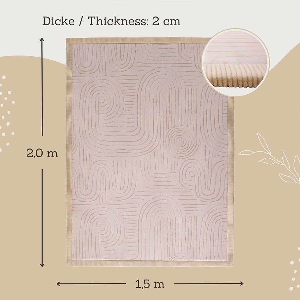 Χαλί υψηλής ποιότητας από την εταιρεία Hakuna Matte, κατάλληλο για να διακοσμήσει οποιοδήποτε εσωτερικό χώρο και φυσικά το παιδικό δωμάτιο. Αποτελείται από 3 στρώσεις: 1. Βελούδο για την πιο απαλή επαφή με το δέρμα 2. Ελαστικό αφρού μνήμης (memory foam) για άνετο παιχνίδι και μπουσούλημα 3. Αντιολισθητικό υπόστρωμα για προστασία από κραδασμούς κατά την πτώση. Το μέγεθος του (200x150x2.5 εκ.) καθιστά το χαλί ιδανικό για προστασία από το κρύο πάτωμα, μπουσούλημα, παιχνίδι, ακόμα και γιόγκα ή γυμναστική στο σπίτι. Καθαρίζεται εύκολα με ηλεκτρική σκούπα ή πανί με νερό και σαπούνι, παρέχοντάς σας περισσότερο ποιοτικό χρόνο για να απολαύσετε τον χώρο σας και να παίξετε ανέμελα με τα παιδιά σας. Πλένεται στο χέρι στους 30°C. Ενδύκνειται για ενδοδαπέδια θέρμανση. Σημαντική διευκρίνηση: σε ξύλινο πάτωμα με ενδοδαπέδια θέρμανση συνίσταται κάθε 2-3 εβδομάδες να ανασηκώνετε στιγμιαία το χαλί, διότι οι κουκίδες από το αντιολισθητικό υπόστρωμα ενδέχεται να δημιουργήσουν κάποια αντίδραση με το φινίρισμα του ξύλου. Υλικό Κατασκευής: Premium Memory Foam πάχους 2 εκ., που επιστρέφει στο κανονικό πιο γρήγορα (μέσα σε 1-2 ημέρες) σε σύγκριση με οικονομικότερες εναλλακτικές λύσεις. 100% ΑΣΦΑΛΕΣ OEKO-TEX 100 STANDARD (αριθμός πιστοποιητικού: 10.HCN.80712) – το ασφαλές και άοσμο παιδικό χαλί είναι κατασκευασμένο χωρίς BPA, φθαλικό, φορμαμίδιο και PAH πολυεστέρα. Πληροί όλα τα πρότυπα ασφάλειας προϊόντων της Ε.Ε. Σχεδιάζεται στη Γερμανία και διαθέτει εγγύηση 2 ετών. Παραδίδεται διπλωμένο ως κουβέρτα σε σακούλα κενού αέρος. Παρόλα αυτά δεν χρειάζεται “σιδέρωμα” για να ισιώσει. Η συμπιεσμένη συσκευασία του εξοικονομεί χώρο και βοηθάει έτσι στη μείωση στις εκπομπές CO2 κατά τη μεταφορά.