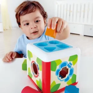 Ο πολύχρωμος κύβος ταξινόμησης μαθαίνει στα παιδιά τα σχήματα και τα πλάσματα του κήπου! Τοποθετήστε τα κομμάτια στις σωστές υποδοχές.