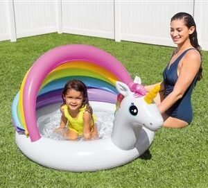 Intex Πισίνα-Unicorn Baby (57113NP).Η Πισίνα του Μονόκερου με Μαλακό Φουσκωτό Πάτωμα και Μερική Πολύχρωμη Ηλιοπροστασία – 127x102x69εκ. – 1-3Χρ.