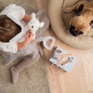 Αυτό το πλήρως εξοπλισμένο κτηνιατρικό βαλιτσάκι με μαγνητικό κλείσιμο από την Jabadabado διαθέτει όλα τα κατάλληλα ξύλινα εργαλεία για να σώσετε τα αγαπημένα σας ζωάκια και τα λούτρινα κουκλάκια που έχουν ανάγκη.