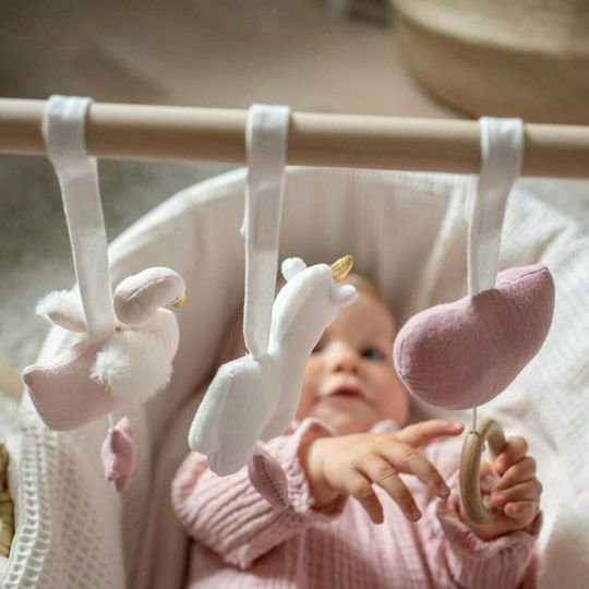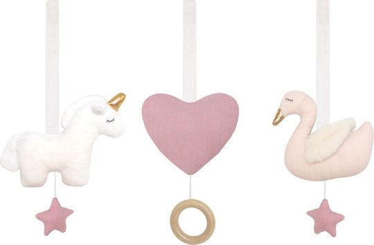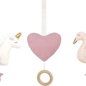 Χαριτωμένα και πολύ απαλά παιχνιδάκια για το ξύλινο γυμναστήριο. Το σετ περιλαμβάνει μια καρδιά, έναν κύκνο και έναν μονόκερο. Η καρδιά παίζει ένα νανούρισμα και ο κύκνος έχει στο εσωτερικό του μια κουδουνίστρα που βγάζει έναν ενδιαφέρον ήχο για το μωρό.