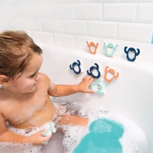 Οι μικροί πρωταγωνιστές αυτού του παιχνιδιού, οι γενναίοι και χαρούμενοι πιγκουίνοι, παίρνουν πολύ σοβαρά τον ρόλο τους για παιχνίδι και διασκέδαση στη μπανιέρα κάνοντας το παιδί να ανυπομονεί για την ώρα του μπάνιου! Ένα πρωτότυπο και αστείο παιχνίδι ισορροπίας από την εταιρεία Ludi, που ενθαρρύνει το δημιουργικό παιχνίδι, καλλιεργεί την υπομονή, βελτιώνει τις κινητικές δεξιότητες και εξασφαλίζει ποιοτικό χρόνο ανάμεσα σε γονείς και παιδιά, καθώς παίζουν μαζί. Με πολλαπλούς τρόπους παιξίματος (κατασκευή πυραμίδας, στοίβαξη και ντόμινο), δε θα το βαρεθούν ποτέ! Το σετ περιλαμβάνει 8 πιγκουίνους και 2 επιφάνειες, κατασκευασμένα από αφρώδες υλικό που κολλάει στις επιφάνειες του μπάνιου όταν βρέχεται και διχτάκι αποθήκευσης. Κατάλληλο από 12 μηνών και άνω. Διαστάσεις: 7 x 6 x 1.5 εκ.