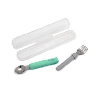 To Spork On the Go (σε θήκη) – Mint/Grey από την Καναδική Melii είναι ένα κουτάλι και ένα πηρούνι ΜΑΖΙ!