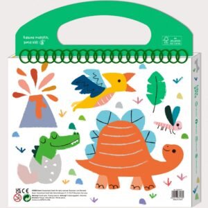 Αποτελείται από 35 φύλλα ζωγραφικής γεμάτα δεινόσαυρους και 6 ‘χαρούμενες’ κηρομπογιές για ατελείωτες ώρες διασκέδασης και δημιουργίας.