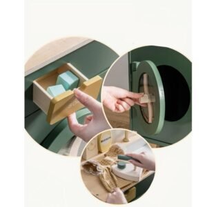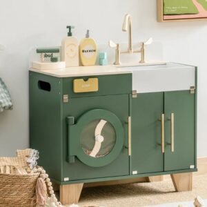 Είναι κατασκευασμένο από ανθεκτικό ξύλο, είναι σε κατάλληλο μέγεθος και έχει πρακτικά ντουλάπια για να αποθηκεύσετε ότι θα χρειαστεί το παιδί για να πλύνει τα ρούχα του ή και να τα σιδερώσει.