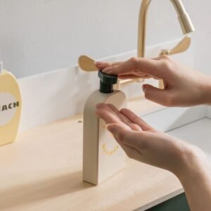 Έχει θήκη για το σαπούνι, σίδερο και απορρυπαντικά για την πλύση και οι διακόπτες για τη βρύση περιστρέφονται.