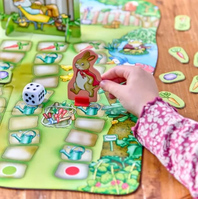 Για να κινηθείτε κατά μήκος του μονοπατιού, απλά ρίξτε τα ζάρια και δείτε πού θα προσγειωθείτε. Αλλά να είστε προσεκτικοί – αν προσγειωθείτε σε ένα ποτιστήρι, το κουνέλι σας θα πέσει μέσα και θα φτερνιστεί ένα δυνατό «Aτσου!». Στη συνέχεια, σηκώστε τον κ. ΜακΓκρέγκορ και γυρίστε τον – κάνοντάς τον να γρυλίζει ή να ροχαλίζει ανάλογα με την κατεύθυνση που βλέπει!