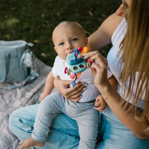 Το παιχνίδι αποτελείται από διάφορα κομμάτια κατασκευασμένα από ασφαλή σιλικόνη και ανθεκτικό πλαστικό. Το μωρό μπορεί να το πιέσει, να το πιέσει, να το σύρει και να το μετακινήσει. Το κάνει πιο ελκυστικό στα μάτια του μωρού και το ενθαρρύνει να εξερευνήσει τον κόσμο με ενεργό και δημιουργικό τρόπο.