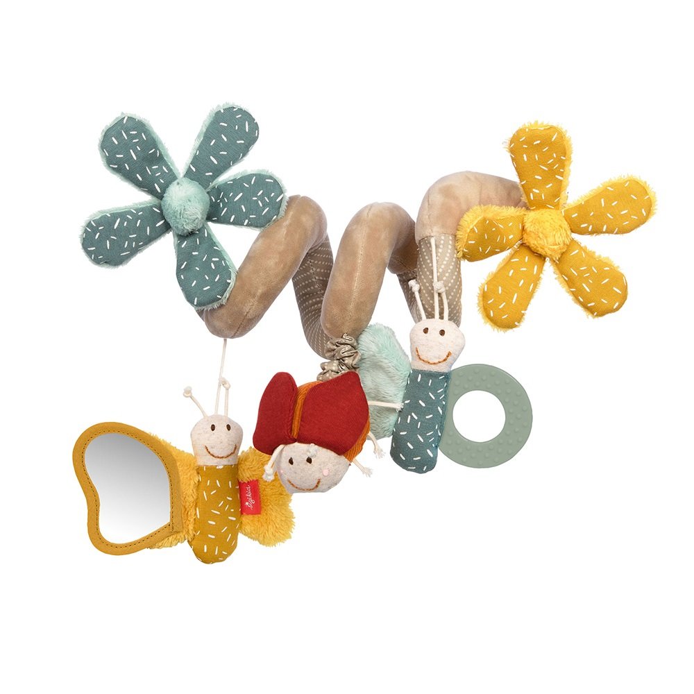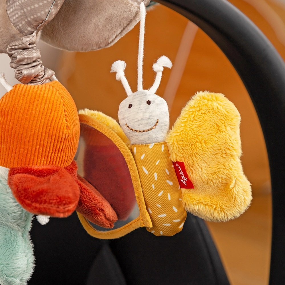 Αλυσίδα καροτσιού της εταιρείας Sigikid που τυλίγεται εύκολα στο καρότσι, την κούνια, το πάρκο ή το πορτ-μπεμπέ! Τα εντυπωσιακά χρώματα σε παστέλ αποχρώσεις εξάπτουν τη φαντασία, η ποικιλία υφασμάτων ενισχύει την αίσθηση της αφής και οι δραστηριότητες ωθούν το μωρό σας να ανακαλύψει και να τραβήξει καθετί που προεξέχει! Το παιχνίδι διαθέτει κρίκο οδοντοφυΐας που θα ανακουφίσει τον πόνο στα ούλα των βρεφών, άθραυστο καθρεφτάκι και μηχανισμό δόνησης τραβώντας την κόκκινη πασχαλίτσα. Βοηθάει τα παιδιά να αναπτύξουν δεξιότητες όπως τον συντονισμό των κινήσεων και να τονώσουν τις αισθήσεις τους. Είναι κατασκευασμένο από υποαλλεργικό πολυεστερικό ύφασμα ασφαλές για τα παιδιά, από την πρώτη μέρα της γέννησης τους. Πλένεται στο πλυντήριο στους 30°C.