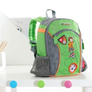 Ποδοσφαιριστές έτοιμοι για τον μεγάλο αγώνα! Υψηλής ποιότητας σακίδιο – τσάντα πλάτης για το νηπιαγωγείο και την αναψυχή. Ο κυρίως χώρος και η μπροστινή θήκη κλείνουν με διπλό φερμουάρ, ενώ στα πλαινά υπάρχουν δυο θήκες με δίχτυ. Εξωτερικά διαθέτει ετικέτα για να γράψετε το όνομα του παιδιού καθώς έχει και ιμάντες ώμου που ρυθμίζονται σύμφωνα με την πλάτη του κάθε παιδιού. Από την εταιρία Sigikid. Διάσταση: 28 x 23 x 10 εκατοστά. Υλικό: ανθεκτικό νάιλον. Καθαρίζεται με υγρό πανί.
