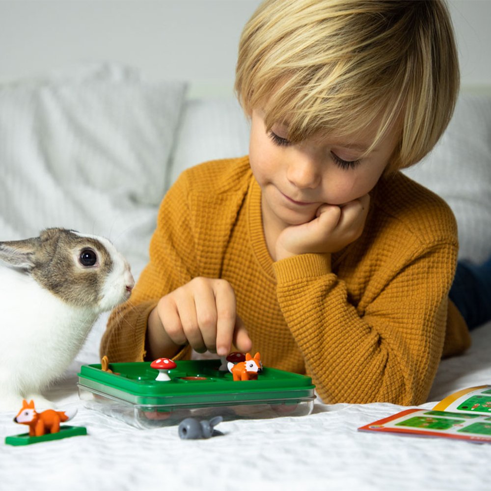 Θα καταφέρετε να σώσετε τα κουνελάκια; Χρησιμοποιείστε μανιτάρια, κουνέλια ακόμη και τις κινούμενες αλεπούδες ώστε να βοηθήσετε τα κουνελάκια να κρυφτούν στις τρύπες τους. Ένα παιχνίδι από την εταιρεία Smartgames που βοηθάει στην λογική, στον προγραμματισμό και στην ικανότητα επίλυσης προβλημάτων. Περιλαμβάνει 60 δοκιμασίες σε διαφορετικά επίπεδα. Κατάλληλο από 7 ετών και άνω.