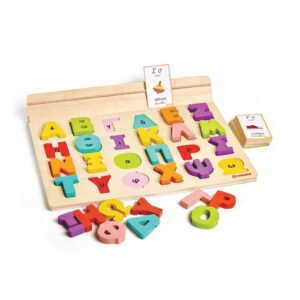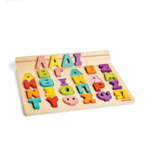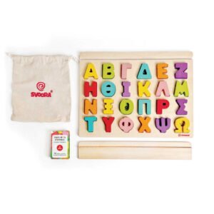 Ελληνικό αλφάβητο σε ξύλινη βάση. Η Ελληνική εταιρεία Svoora δημιούργησε ένα ασφαλές παιχνίδι, με το οποίο τα παιδιά μπορούν εύκολα να αντιληφθούν τα 24 γράμματα της ελληνικής αλφαβήτου! Η διαδικασία της μάθησης γίνεται πιο διασκεδαστική, καθώς το παιχνίδι περιλαμβάνει 50 κάρτες πρώτης γραφής και ανάγνωσης, έτσι ώστε η ταύτιση της εικόνας με το κάθε γράμμα να βοηθήσει στην κατανόησή τους. Το παιχνίδι προετοιμάζει τα παιδιά για την ομαλή ένταξή τους στο δημοτικό με δημιουργικό τρόπο! Περιλαμβάνεται 1 ξύλινη βάση (2 τεμαχίων), 24 γράμματα κατασκευασμένα από μασίφ ξύλο οξιάς και 50 κάρτες πρώτης γραφής. Τα γράμματα έχουν ύψος 5.1 εκατοστά και πάχος 1.2 εκατοστά.