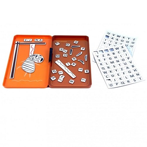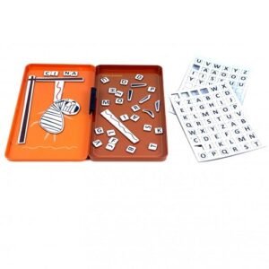 Το κλασσικό εκπαιδευτικό επιτραπέζιο Κρεμάλα σε μαγνητική μορφή και σε συσκευασία ταξιδίου. Βρείτε τη λέξη που κρύβει ο αντίπαλος χωρίς να οδηγήσετε τη ζέβρα στην κρεμάλα! Ένα επικοινωνιακό παιχνίδι μαντεψιάς της σωστής λέξης ή φράσης του αντιπάλου που βοηθάει στην εκμάθηση ορθογραφίας. Περιλαμβάνει 126 μαγνητικά γράμματα, 11 μαγνητάκια τμήματα ζέβρας & κρεμάλας, 1 ταμπλό. Ιδανικό για όλη την οικογένεια. Περιλαμβάνονται οδηγίες στα ελληνικά και στα αγγλικά, καθώς και λατινικό μαγνητικό αλφάβητο. Κατάλληλο από 6 ετών και άνω. Διαστάσεις συσκευασίας: 18,5×10,5×1 εκ.